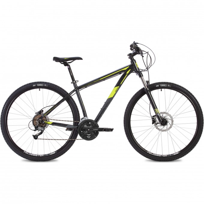 Мужской велосипед для кросс-кантри из среднего ценового сегмента STINGER GRAPHITE PRO, модель была переработана и оптимизирована по комплектации в 2021 году. Обновленная рама реализована на трубах с ребрами жесткости, есть возможность внутренней проводки тросов переключения и гидролиний, также оснащена полуинтегрированной рулевой колонкой. Амортизационная вилка STG SPICE RL пружинно-масляная, имеет гидравлическую блокировку, полноценные сальники и направляющие из твердого полимера, что делает ее мягкой и надежной, несмотря на скромный бюджет. Тормоза дисковые гидравлические от компании SHIMANO модель MT200, трансмиссия с системой на 3 звезды и кассетой на 9 скоростей - SHIMANO HG200. Колеса с двойными ободами и покрышками шириной 2 дюйма. Данная модель на колесах 27 дюймов с рамой 18 дюймов в черном цвете.